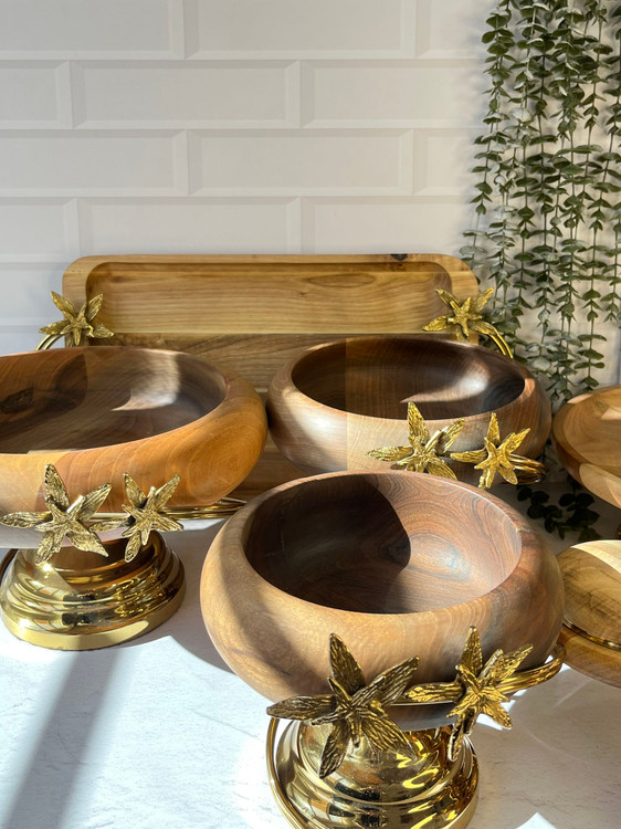 سرویس چوب گردو شامل میوه خوری شکلات خوری آجیل خوری اردوخوری شیرینی خوری