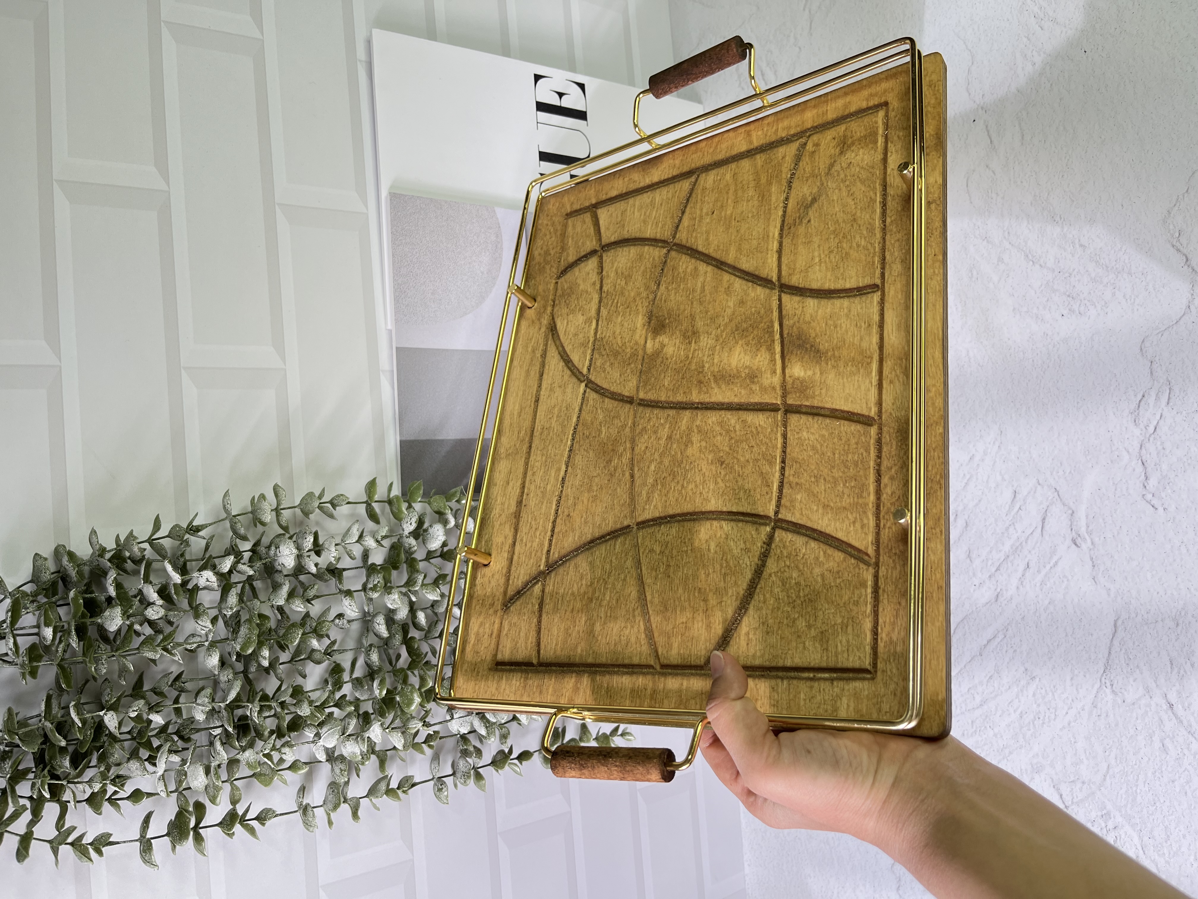 سینی چوبی دور فلزی